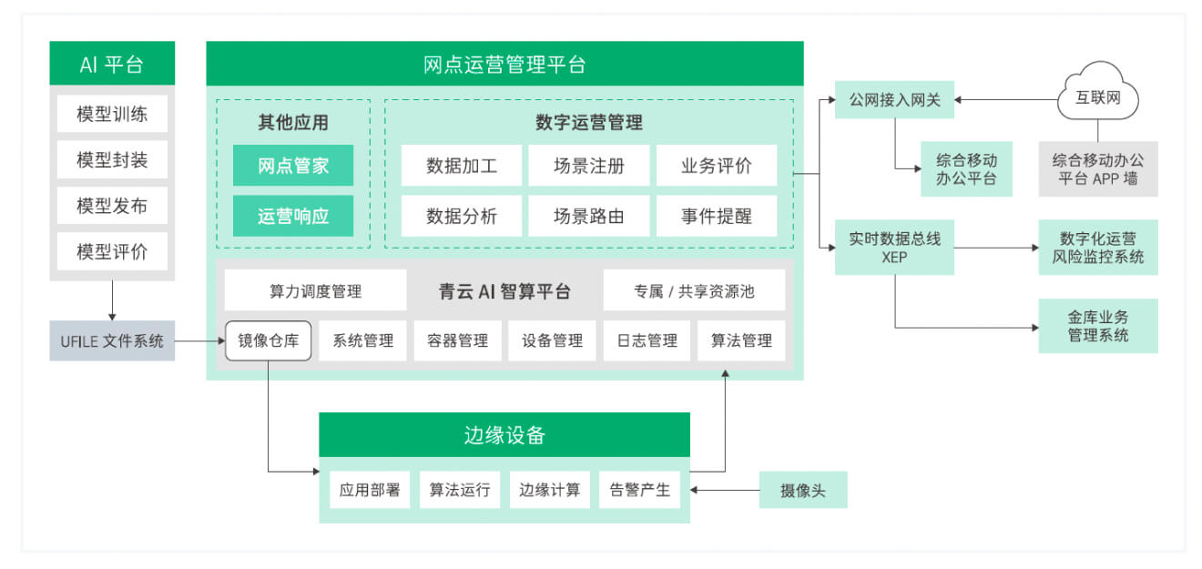 为全国 430 余家网点和 40+ 业务场景提供边缘算力资源,覆盖超柜代客操作、三方驻场监测、数字孪生、智慧畜牧等不同业务场景,为该银行智慧化转型提供有力支撑。